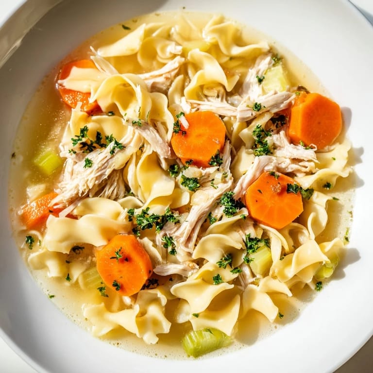 The magic of chicken noodle soup lives in its simplicity and the care you put into each step. You're not trying to be fancy, you're trying to be honest, and that honesty comes through in how the broth tastes and how it makes people feel. The chicken stays tender because you're poaching it gently instead of boiling it to death, the vegetables cook down into the broth instead of sitting as separate pieces, and the noodles have just enough time to become tender without turning into mush. There's no trick here except patience and attention.