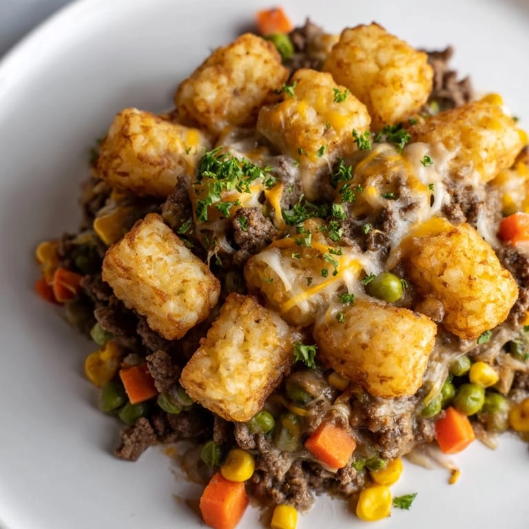 Swap the ground beef for ground turkey or chicken if you want something lighter, though you'll lose a tiny bit of richness in the filling. Add sliced mushrooms, diced bell pepper, or even corn to the vegetable mix for different textures and flavors. If you're cooking for someone with dietary restrictions, use gluten-free cream of mushroom soup and check that your tater tots are certified gluten-free—the rest stays exactly the same.